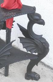 Importante base porta bandiera appartenuto ad un importante personaggio storico, capo di stato di una repubblica ormai sciolta nel sangue che si è trasformato in inchiostro andato a scrivere pagine di storia che resteranno da leggere e ricordare..Il porta bandiera che è in ghisa, rappresentato da tre grifoni disegna un diametro alla base di circa cm 50 ed è alto cm 68, con l'asta che sostiene la bandiera raggiunge attualmente cm 210 ma l'asta pur essendo d'epoca, non è quella originale che con ogni probabilità è stata messa in salvo assieme alla bandiera di stato di allora. La sola base potrebbe avere un peso di circa 100 kg ma è una stima fatta senza la bilancia.