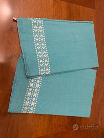 Come in foto: sei asciugamani bianchi con frange e due asciugamani da cucina verdi. Tutto nuovo proveniente dal baule della nonna. Lino o misto lino. Imperfezioni dovute al fatto che si tratta di asciugamani confezionati a mano. Se acquistati in blocco vendo a 45 euro, separatamente quelli bianchi 7 euro l’uno, quelli verdi 5 euro l’uno.