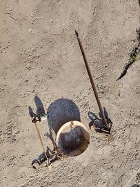 Antica bilancia a stadera in ferro con piatto – oggetto vintage decorativo Descrizione: Vendo antica bilancia a stadera in ferro, completa di piatto e meccanismi originali. Oggetto autentico dal fascino rustico, ideale come elemento d’arredo per ambienti vintage, taverne, agriturismi o collezionisti di attrezzi d’epoca. La struttura è solida, con segni del tempo che ne valorizzano l’autenticità. Presente catena e sistema di pesatura originale. Condizioni: Usato, con ossidazioni e segni di usura visibili (vedi foto). Ideale per: Arredamento vintage/industriale Collezionismo Allestimenti scenografici