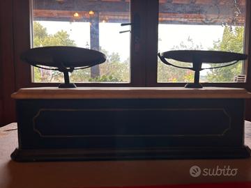 Vendo magnifica e rara bilancia a due piatti, risalente al 1800. Si tratta di un pezzo d'antiquariato autentico, perfetto per collezionisti, appassionati di oggettistica d'epoca o come elemento di arredo unico per ambienti con stile vintage o rustico-chic.