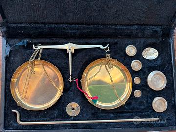 Vendo antica bilancia per gioielli in ottone nautica con custodia.