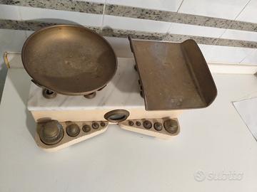 Bilancia con pesi di vario formato. Ricordo di famiglia, anticamente veniva utilizzata per pesare coralli e madreperle. Ottimo stato di conservazione, pienamente funzionante. Può essere utilizzata o come bilancia o come oggetto di arredamento.