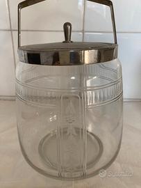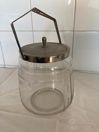Vendo questa splendida biscottiera antica, anni '50, in vetro lavorato a mano con coperchio e manico in metallo, oggetto di indubbio valore collezionistico e da esporre in soggiorno, con biscotti ma anche con fiori, cioccolatini o caramelle. Vendo a malincuore. Consegno a Genova o spedisco con spese a carico del destinatario