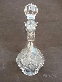 antica bottiglia in cristallo di Boemia con tappo, altezza cm 28.