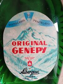 Bottiglietta tascabile degli anni 70 di original genepy,prodotta dalla distilleria Albergian di Pragelato.