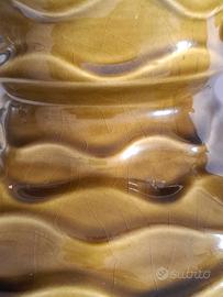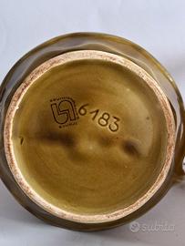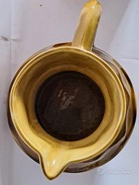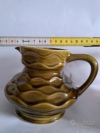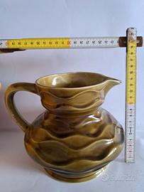 Brocca in maiolica francese Sarreguemines con tipico motivo ad onda. L' effetto crackle è naturale ed è dovuto al tempo trascorso. Sul fondo presenta il timbro di produzione.