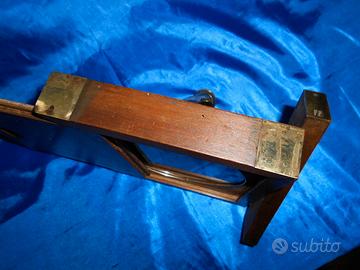 Originale, rara bussola da geometra o carpentiere, denominata “Forestière” (Forestale), prodotta in Francia nel 18° secolo da Noël-Jean LEREBOURS (1761-1840), attivo dal 1789 al 1840, associato a suo figlio nel 1820 che gli subentrerà nel 1840, prima di associarsi a SECRETAN nel 1845. Una bussola simile è esposta a “Place du Pont Neuf” a Parigi dal 1793. Quadrante disegnato a mano, con rosa dei venti ed un angelo con arco che mira a Nord, punto cardinale indicato con un fiore di giglio; inoltre, è raffigurato un caduceo (bastone alato con due serpenti attorcigliati intorno ad esso) in corrispondenza dei punti cardinali S, E, O. Sistema di bloccaggio dell’ago magnetico mediante contrasto con astina in ottone a doppio fulcro, fissata lateralmente. Presente pure il teodolite originale in ottone (raro su questi modelli), da fissare sulla base della scatola in mogano. Dimensioni scatola: 18,5 x 17 x 3,5 cm. Peso della bussola: 710 grammi circa. Altezza e peso del teodolite: 11 cm, 300 gr.
