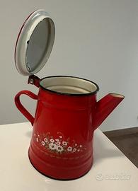Antica caffettiera - teiera smaltata rossa