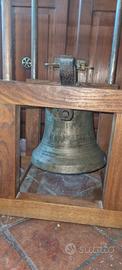Campana in bronzo, non datata e senza marchio di fabbrica, montata su castello in fusione di ghisa, misura 30 cm di diametro e 40 cm di altezza, 25 kg di peso,