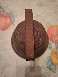 Proponiamo una singolare campana in bronzo, presumibilmente del XIX secolo, un oggetto carico di storia e interrogativi. Materiale: bronzo. Dimensioni: diametro 15 cm, altezza 12 cm, peso 1020 gr.