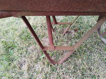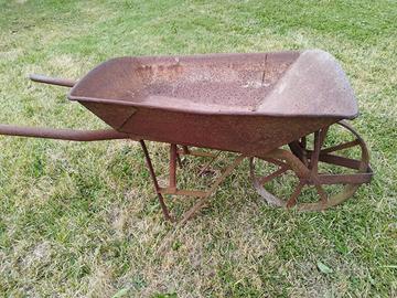 carriola del 1900, interamente in ferro, da arredo esposizione... funzionante, interamente in ferro con ruota .Le condizioni sono buone, solo arrugginita; è sicuramente utilizzabile ancora oggi. La ruota funziona bene. Ritiro SOLO IN LOCO.