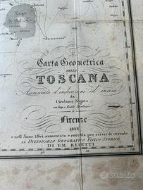 Vendo carta geografica della regione Toscana , della meta’ del 1800 , incorniciata , misura 85x65 .