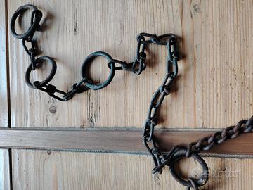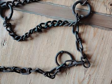 Antica Catena In Ferro Battuto A Mano Per Bovini. Composta da differenti maglie. Lunghezza massima 140 cm e peso 650 gr