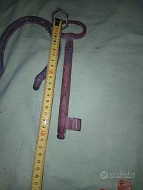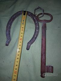 antica chiave portone in ferro forgiata a mano fine 800 + ferro di cavallo x info chiedete