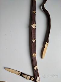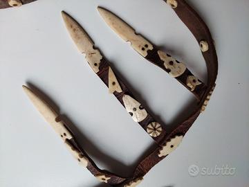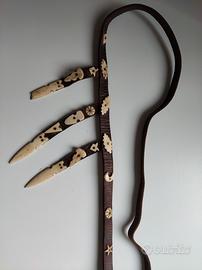 Antica e rara cintura costume tradizionale circasso in cuoio con finimenti in osso lavorato. La cintura aveva anche la funzione di reggere il pugnale tradizionale kindjal.
