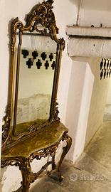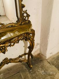 Antichissima consolle e specchiera intagliate raffinatamente a mano e in pregiato legno. Pezzi che risalgono al 18esimo secolo (1700), dove come altro componente fondamentale troviamo il MARMO della console, anch’esso pregiatissimo. Un pezzo unico nel suo genere. Ritiro a mano o in consegna a Milano e provincia.