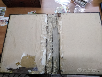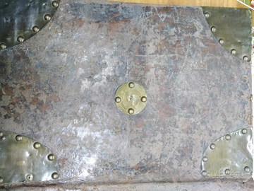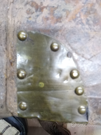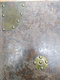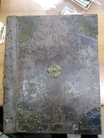 Antica copertina in pelle e bronzo per libro antico. Grandi dimensioni, cm 70 x 45, condizioni come da foto. Borchie in bronzo sul fronte e sul retro.