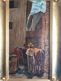 Antico dipinto olio su legno, tratto da Telemaco Signorini, famoso macchiaiolo.