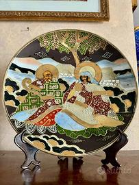 Favolosa e antica (non moderna) coppia di grandi piatti giapponesi eseguiti con la tecnica Satsuma Moriage marchiati sul retro.