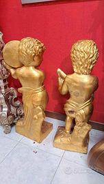 Coppia di puttini realizzati in bronzo con patina oro. Epoca anni 70,