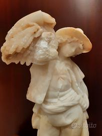 Antica coppia di sculture in alabastro che rappresenta due ciociari con il tipico costume settecentesco.