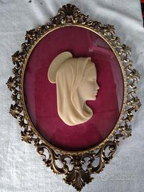 ANTICA TECA IN OTTONE SACRA IMMAGINE CORNICE OVALE IN OTTONE MADONNA BELLINI