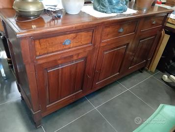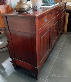ANTICA CREDENZA 3 PORTE 3 CASSETTI NOCE MASSICCIO
