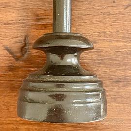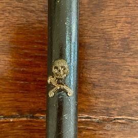 Non è un oggetto che si guarda distrattamente. È un oggetto che si incontra. Questo crocifisso da appoggio, slanciato e severo, porta con sé una presenza silenziosa ma intensa. La croce in legno scuro, segnata dal tempo, accoglie un Cristo in metallo dalla materia vissuta, irregolare, profondamente umana. Nulla è levigato, nulla è addolcito: è un’immagine pensata per la meditazione, non per la decorazione. Lungo il fusto, ai piedi della croce, compare un teschio con tibie incrociate. Non è un dettaglio casuale né puramente simbolico. Rimanda al Golgota, il “luogo del cranio”, dove secondo un’antica tradizione cristiana era sepolto Adamo, il primo uomo. In questo incontro tra il cranio di Adamo e il corpo del Cristo si compie visivamente l’idea della redenzione: la caduta e la promessa, la fine e il riscatto, l’umano e il divino che si toccano. La base tornita, solida e stabile, restituisce equilibrio all’insieme, rendendolo un oggetto pensato per stare: su un tavolo, un inginocchiatoio, una mensola raccolta. Non parla ad alta voce. Ma a chi si ferma, racconta molto.
