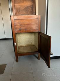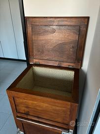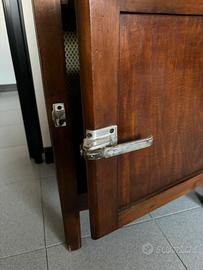 Antica ghiacciaia con sportello anteriore con cerbiere e maniglia e superiore. Rivestita internente.
