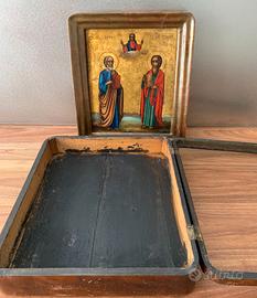 Icona (31x34,5)ad uso domestico, Santi Pietro e Paolo, conkiot(teca).