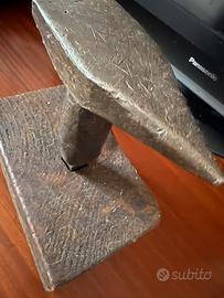 Un'incudine in ferro scultorea della metà del XIX secolo, probabilmente appartenuta originariamente a un maniscalco inglese, con la sua base originale in legno