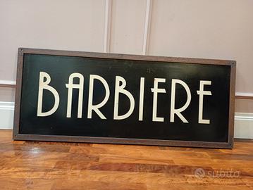 antica grande insegna in metallo con scritta anni 30 stile razionalista BARBIERE.
