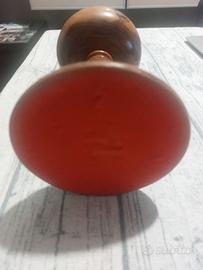 Base in Legno: La base tornita presenta venature in ulivo, un materiale comune per oggetti artigianali.