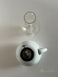Condizioni come da foto. Materiale: ceramica, metallo e vetro. Pezzo originale d’epoca.