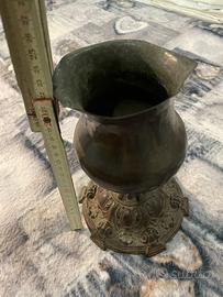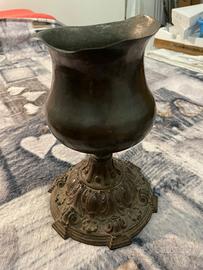 Lampada ad olio antica in bronzo di 23cm. Senza la parte superiore in vetro. Riadattata a calice / vaso.