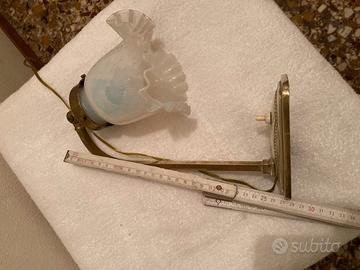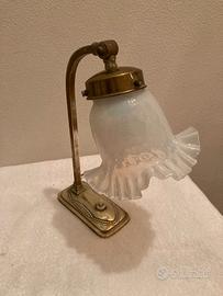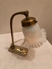 Vendo questa bella, antica lampada da tavola in ottone da tavolo/scrivania o abat jour su comodino. La lampada e' in ottone ed e' perfettamente funzionante. Altezza 25 Cm, coprilampadina in vetro opaco molto bello. Prezzo leggermente trattabile. Consegno su Genova ma disponibile a spedire con costi a carico del destinatario.