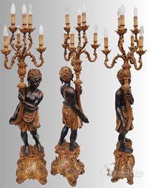 L'antico moro sorregge il candeliere che a sua volta poggia su un basamento in legno