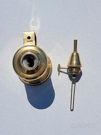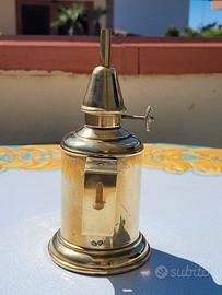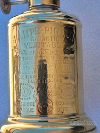 BELLISSIMA ANTICA VECCHIA VINTAGE LAMPADA A PETROLIO IN PURO OTTONE, prodotta in Francia dalla storica marca “PIGEON”, tra la fine dell’800 e gli inizi del ‘900. La scritta frontale è ancora molto ben leggibile, è scritto “LAMPE – PIGEON GARANTIE VÉRITABLE INEXPLOSIBLE A L’ESSENCE MINÉRALE” Poi sono descritti i vari marchi, anch’essi tutti molto ben leggibili, col logo del piccione che ha una lampada sul becco: “MEDAILLE D’ARGENT PARIS 1885”, “MARQUE DE FABRIQUE”, “DIPLOME D’HONNEUR ARACHON 1885” “SÈCURITÈ MARQUE” E “ÉCONOMIE DEPOSÉE” La lampada ha ancora il suo MANICO ORIGINALE, cosa difficile da trovare sulle lampade, perché si staccava spesso. È stata accuratamente lucidata con prodotti specifici per l’ottone per riportarla agli antichi splendori di un tempo. All’interno della lampada c’è ancora L’IMBOTTITURA ORIGINALE, e si sente ancora un leggero odore di petrolio, infatti questa lampada veniva usata quando la corrente elettrica non era ancora ampiamente diffusa e per illuminare si faceva uso di queste lampade. È in OTTIME CONDIZIONI, SENZA DANNI DI RILIEVO, cosa MOLTO DIFFICILE considerando che HA PIÙ DI 100 ANNI ed è un oggetto che veniva usato molto, di solito si trovano in condizioni ben peggiori. Svendo a prezzo per affare! Misure: Diametro maggiore: 8 cm Alt.: 17,5 cm È un pezzo di storia che non può mancare nella vostra collezione! Ideale anche per allestimento vetrine per negozi, per arredare in modo rustico e donare il fascino dell’antico e del vintage a pub, ristoranti, pizzerie, agriturismi, ma anche tavernette e cantine. Ottima per collezionisti di oggetti antichi, attrezzi ed attrezzature del passato, oggetti nautici o navali, anche alle prime armi, un bellissimo oggetto da esporre in una fantastica collezione, ottima idea come regalo di Natale! GUARDATE ANCHE GLI ALTRI MIEI ANNUNCI, HO ANCHE ALTRI OGGETTI E LAMPADE IN VENDITA, SU RICHIESTA POSSO CREARE UN UNICO ANNUNCIO CON PIÙ OGGETTI, COSÌ PAGATE UNA SOLA SPESA DI SPEDIZIONE!