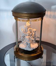 Antica lampada sacra tedesca, in bronzo e ceramica originale. Pezzo da museo e galleria d’arte. Unico e imperdibile. Un gioiello del 1700!