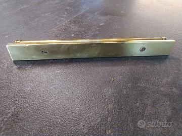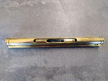 Antica livella a bolla con base in ottone massiccio. L cm. 19 x P cm. 2 x H cm. 2,5. Attrezzo in origine per misurazioni in campo tecnico, ancora funzionante. Oggetto da vetrina, soprammobile o fermacarte da scrivania.