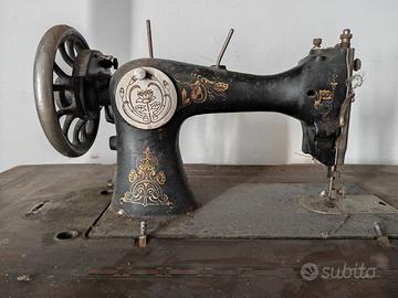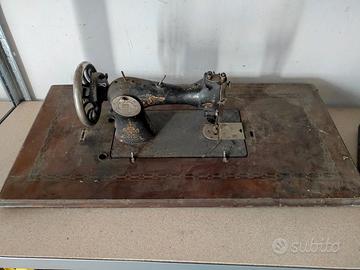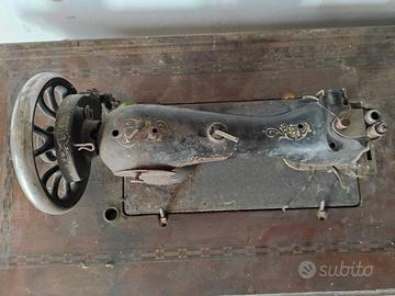 Antica macchina da cucire d’epoca con base in legn