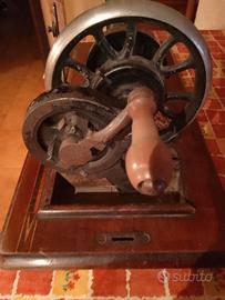 Vendo antica macchina da cucire funzionante da collezione o vintage a manovella marca GRITZNER DURLACH nera con dipinti a mano con banco di supporto intarsiato in legno massello verniciato