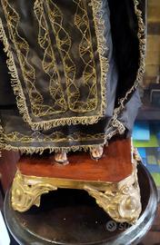 Antica Madonna con testa e arti in terracotta, occhi di vetro e vestiti in