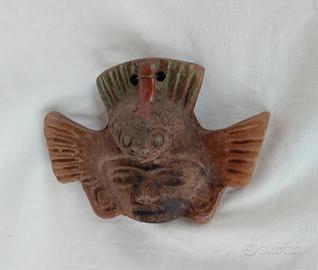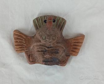 Antica maschera Maya Azteca terracotta argilla fatta a mano da appendere, proveniente dal Messico. Misura cm.11x7,5 spessore cm.1