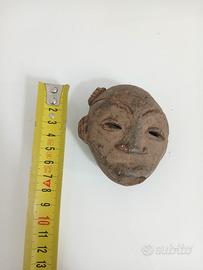 Antica Maschera Tribale Etnica in Argilla Terracotta Reperto Antico D'Epoca