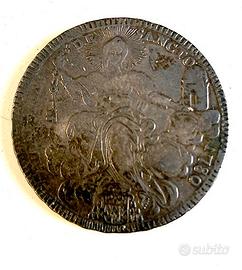 Antica moneta dello Stato Pontificio, PIO VI - 1775-1799 Scudo Romano in argento 1780 - anno VI. Diametro 40 mm peso 26,15 gr. Errore di conio: 1780 con il numero 1 battuto al contrario