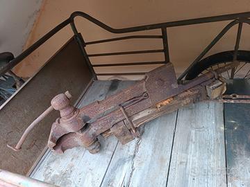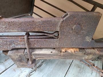 L'oggetto mostra segni significativi di ruggine e usura dovuti all'età e all'uso.