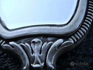 Antica parure specchio con spazzolain argento"800"bel pezzo d'antiquariato.