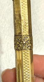 Antica Penna stilografica Waterman's Ideal retrattile modello Ideal 42 placcata oro 18 carati con veretta a motivi floreali, pennino originale A2, periodo 1920 / 1930. Da collezione privata