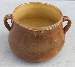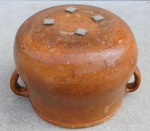Antica pentola in terracotta e recipiente conserve